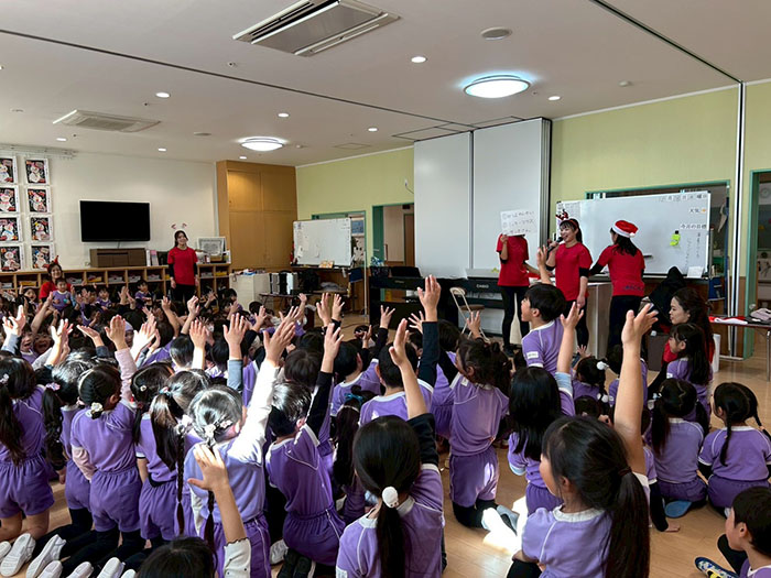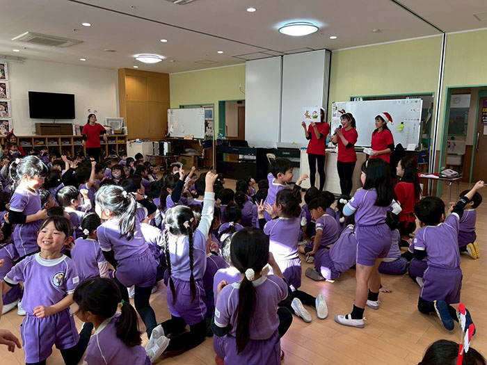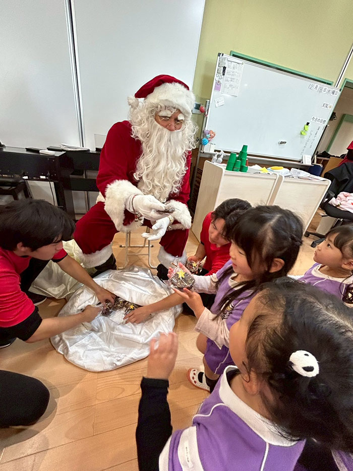 クリスマス会 2025.12.18 2025年度 今日はクリスマス会がありました。 子どもたちの笑顔とワクワクがいっぱいの雰囲気の中、先生たちによるオープニングダンスからスタートしました♪ みんなでクリスマスの歌やダンスを楽しんだり、クリスマスクイズの時には答えを考え、お部屋中に元気な声が響きわたりました。 サンタクロースの登場では大きな歓声が上がり、目を輝かせて見入っていました。 プレゼントを手にした子どもたちの嬉しそうな笑顔があふれる、心温まるクリスマス会となりました。 この記事のタイトルとURLをコピーする マラソン大会 前の記事