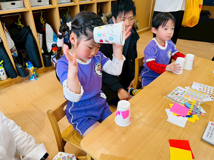 親子制作では、おうちの方と一緒に話をしながら取り組む姿がとても微笑ましく、嬉しそうな笑顔があふれていました。