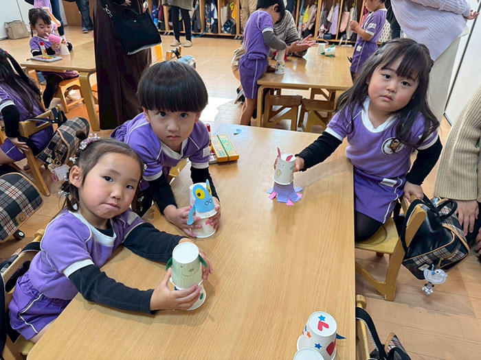 初等科さんの参観日 2025.11.27 全ての記事 今日は初等科さんの保育参観日でした。 英語の時間ではジェフ先生との英語でのやりとり、本当に楽しそうでしたね。 親子制作や親子体操もお家の方と一緒に活動し、みんなで充実した時間を過ごすことができました。 この記事のタイトルとURLをコピーする 研究科さんの参観日 前の記事