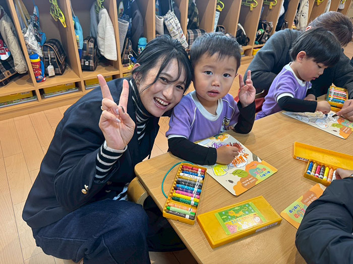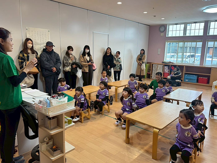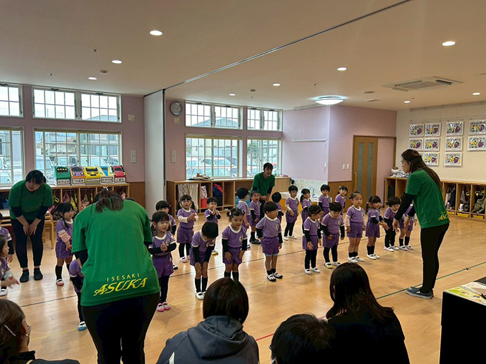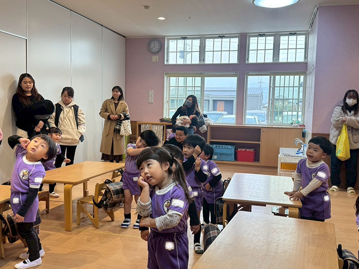 研究科さんの参観日 2025.11.26 2025年度 全ての記事 年間行事 今日は研究科さんの2学期保育参観日でした。 歌唱指導、日課活動、クラス活動を見学していただきました。 お家の方を前にとても張り切っていた研究科さん。 よく頑張りましたね。 園での成長した子どもたちの様子を見ていただけたと思います。 この記事のタイトルとURLをコピーする さつまいも掘り 前の記事