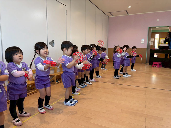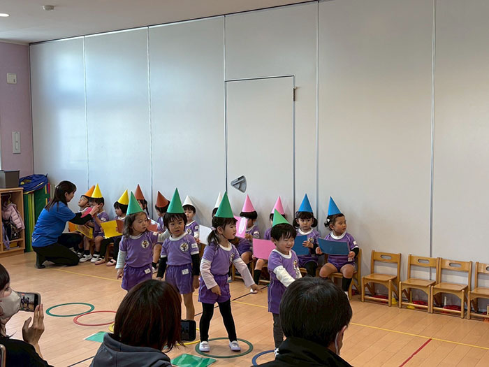 うたやダンス、劇あそび、合奏の発表を行いました。少し緊張しながらも、笑顔で元気いっぱいに取り組む姿がとても微笑ましく、子どもたち一人ひとりの成長を感じられる時間となりました。