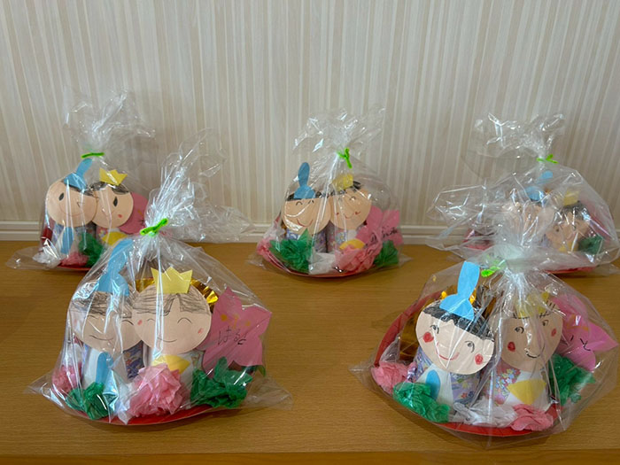 今、あすかの園舎は子どもたちが作り上げたおひなさまの制作により春一色となっています♪